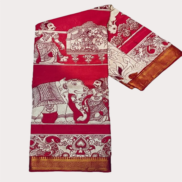 Lightweight Kalamkari cotton saree with hand-printed floral designs, perfect for daily wear and office use.