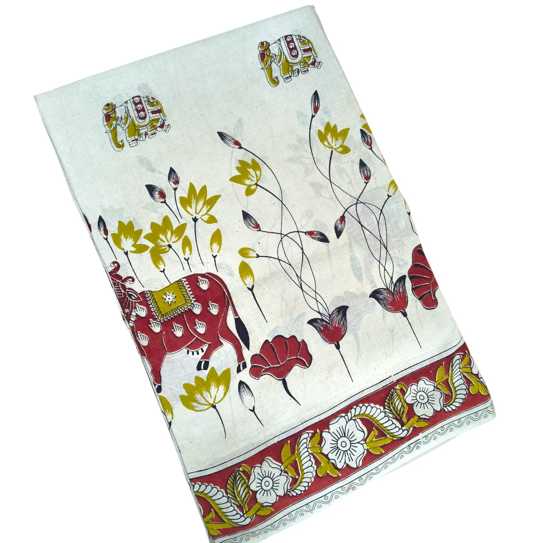 This Kalamkari Handloom Cotton Saree is a graceful blend of artistic storytelling and everyday elegance. Woven from premium handloom cotton, the saree feels soft against the skin and offers excellent breathability, making it suitable for all-day wear in any season.